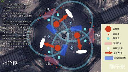 在以上所有的操作过程中均包含boss吐毒4下和3个震荡波的循环,注意躲避和跳跃。尤其是boss的第二轮吐毒,目标依旧是第一轮的4个单位,时间大约是在聚怪结束前后。第三轮吐毒,时间大约在近战上前补刀时。务必注意提防,必要是可开无敌(御剑等)抵抗。前面两轮被吐毒的单位在补刀时请勿上前。