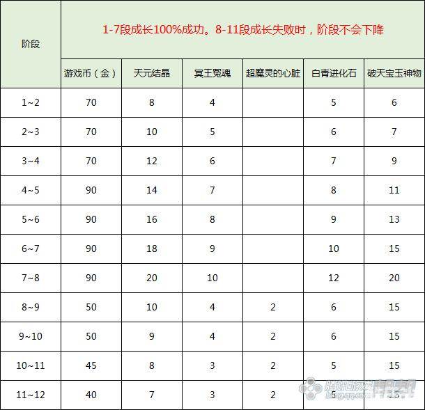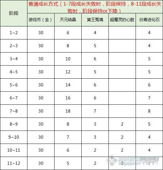 1,普通成长方式(1-7段成长失败时,阶段保持,8-11段成长失败时,阶段保持or下降)
