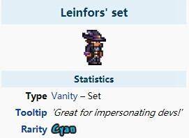 莱茵福斯的服装是开发者物品,是以泰拉瑞亚制作助理莱茵福斯的名字命名的。