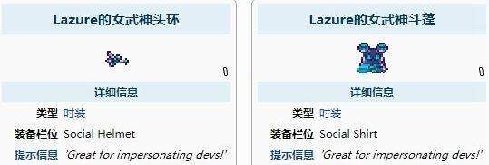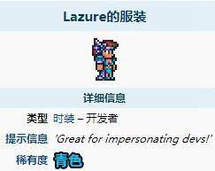 拉热尔的服装是开发者物品,是以泰拉瑞亚负责显影图形的拉热尔的名字命名的。