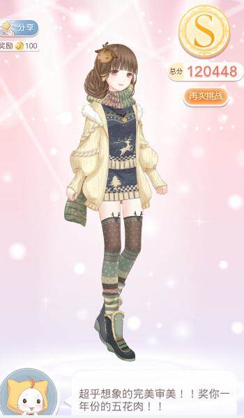 这一关虽然没有指定,但是森系风的TAG及其明显,森系风格的套装中最简单易得的就是“少女与麋鹿”直接使用即可。