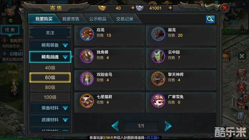 在50-70级这个阶段,可以更换60级的战魂,60级战魂也是一个过渡阶段。60级战魂中比较极品的是七星魔君和擎天神将,不过这两个战魂都比较贵,并不太适合平民玩家。普通一点的战魂可以使用紫色的云中翅和双翅金乌,这两个战魂都有稳定的来源,云中翅是物理输出,双翅金乌是法术输出,都有着不错的输出能力,在野外刷怪、副本任务和九黎入侵中是个不错的帮手。独角兽和广寒雪兔虽然也是紫色战魂,但是独角兽是体质战魂,输出能力不足,而广寒雪兔的来源非常少,合魂的时候很难找到伴侣。