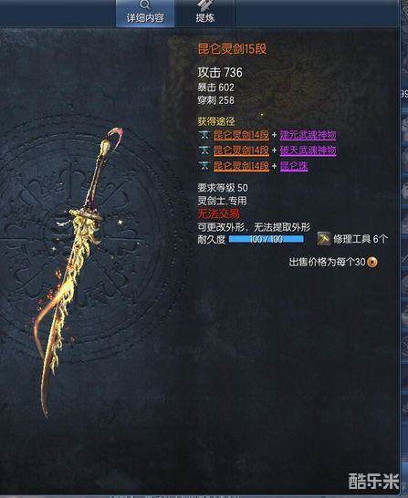 剑灵昆仑武器成长树 昆仑武器升级材料表