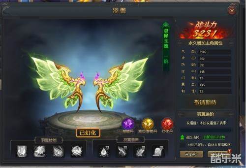 5. 奇珍:“潜能丹”、“高级潜能丹”、“幻化丹”。可增加永久的羽翼属性从而提升羽翼的战斗力。