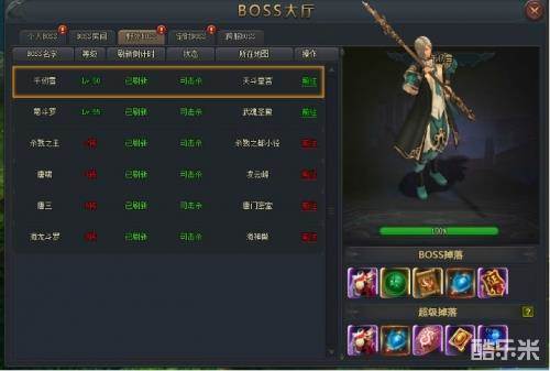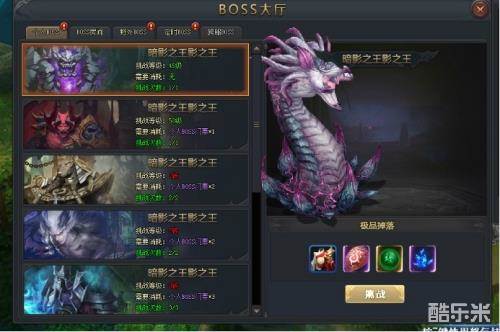 4.定时BOSS:每日定时刷新的BOSS,击杀boss必定获得掉落,并有机会获得极品掉落,对BOSS造成的伤害越高,越有机会获得极品掉落
