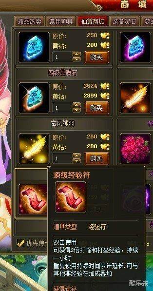 50级后,仙尊商城开启后,里面有顶级经验符可以购买哦~双倍经验符~~小伙伴们都惊呆了!