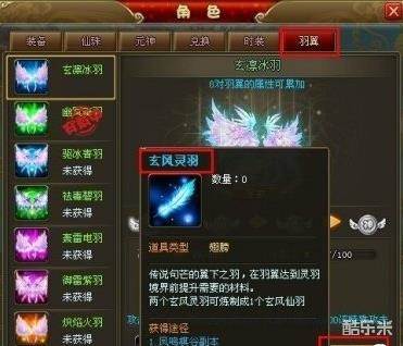3.羽翼提升,可以在角色面板-羽翼界面直接点购买提升的材料: