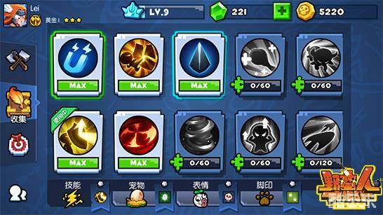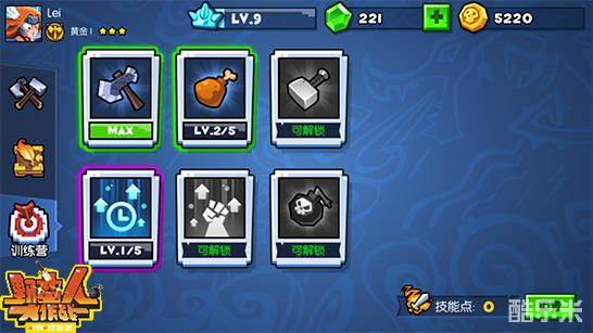 与你曾玩过的自选技能的游戏完全不同,《野蛮人大作战》中玩家仅能通过在对局中长大升级才能从随机出现的三个技能中进行选择,分别有0-1-2-3-★五个等级。