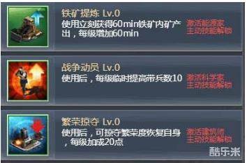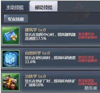 而被动技能的军官技能分类下都是增加工作效率的技能有的是建造的速度,有的是提高效率。