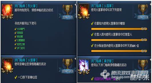 ③武功成就:角色达到50级后,武功成就能做的尽量达成,秘籍全开是踏入剑灵世界的开始;举例气功成就全图如下: