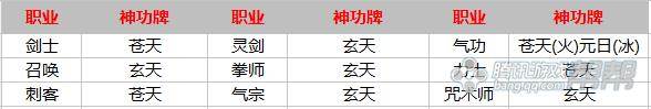 各职业神功牌选择: