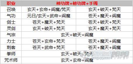 各职业【神功牌】【秘功牌】【手镯】搭配: