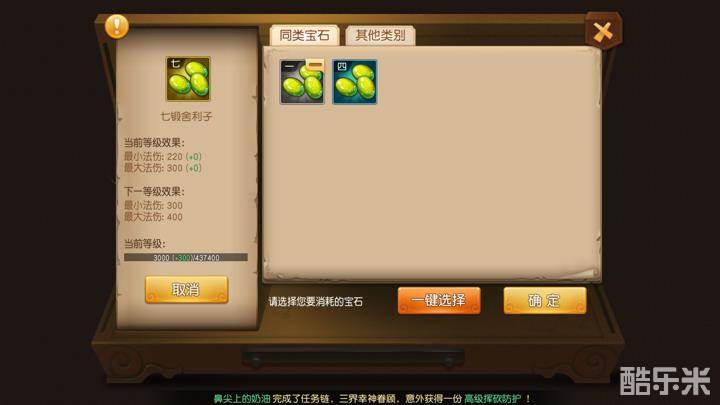 其次,培养宝石可以用1-7级的任何一个等级的培养,手贱的宝宝们就不会乱合宝石了,可以把一些同样的低级宝石用于培养,而不是随便和其它宝石乱合.打个比方吧:被培养的宝石是你的理财产品,你的一些不该用的钱都放进去,最后得到收益是一样的道理