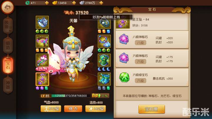 我就把神秘石合成了8级,别的放了6级,但是反而战力低了,所以宝石的平衡性很重要