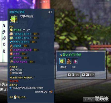 首先今天更新后进入游戏就能看到一个前缀任务需要咱们来完成,这次能获得的是水蛙族礼物箱,可以看到也有几率可以开出成长符,这又是考验人品的时刻啦~