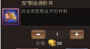 因为我选则的角色是攻击属性的,所以就需要攻击属性的职业进阶书。只需要30元宝就可以购买一本。而升级需要消耗的本数会越来越多。