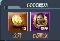 比如这里最多的6000军功宝箱打开就是15金币和能源家的勋章。