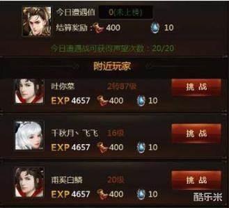 这个主界面就是遭遇战了,在这里首先看到附近的玩家。以及上面的遭遇值,结算奖励,还有声望获得次数。