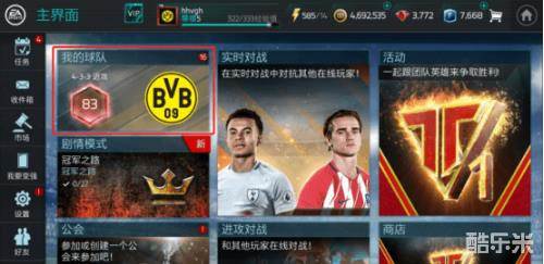 点击位于游戏主界面左上区域的“我的球队”进入我的球队界面