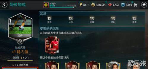 升级球员天赋不仅可以提升球员属性,还可以获得经验,升级你的账号等级!