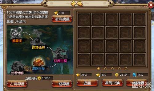 4.vip玩家可世界花费元宝使用凌霄摘星的功能抵达蓬莱仙阁,并且必定获得10点星魄,星魄可用于兑换命魂