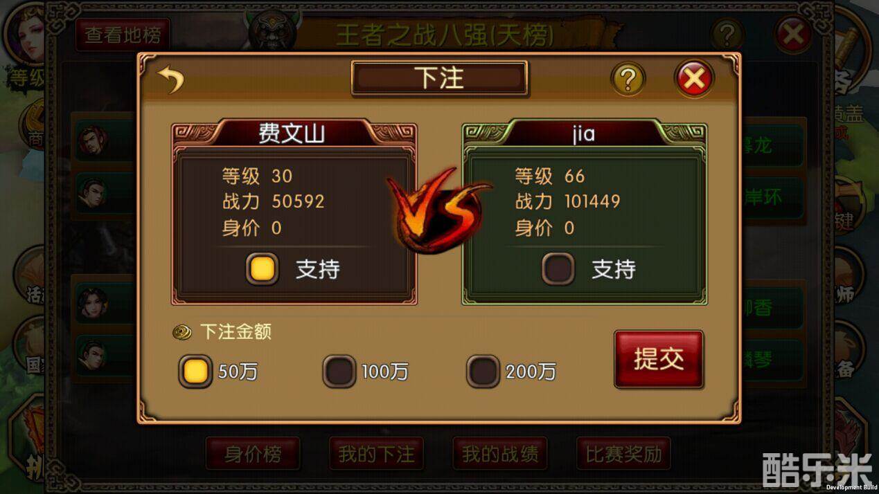 进到晋级赛之后玩家能在王者之战查看比赛的状况,还能下注,赢了能获得双倍下注金额。