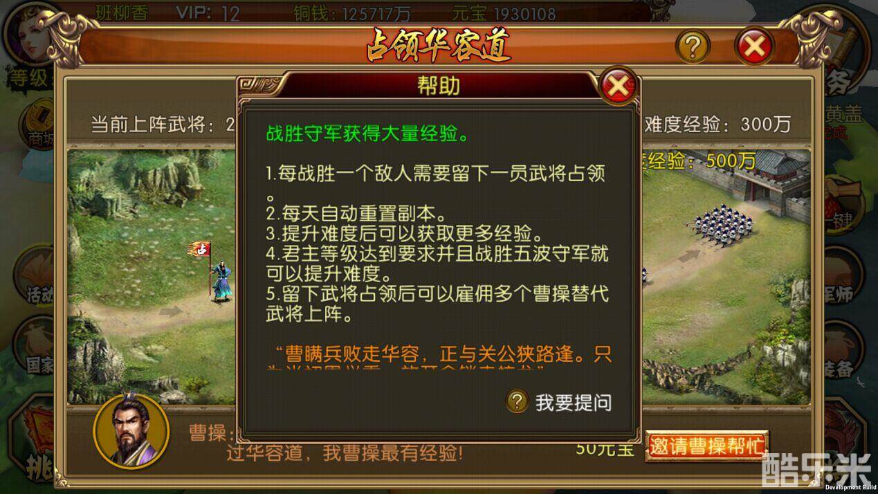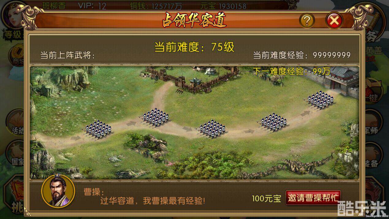 华容道挑战一关之后需要留下一名武将占领,所以到后面武将就会变成一名,玩家培养武将就显得很重要了,要是挑战失败还能邀请曹操帮忙,50元宝一次。邀请之后队伍数列最多是5名武将。
