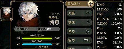 下面是全智加点黑骑,为方便计算,把魔攻控制为300: