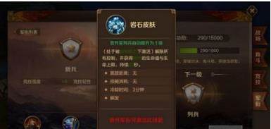 岩石皮肤:(处于被控制状态下激活)解除所有控制,并获得额外的生命值与生命上限,持续20秒。施放距离:无,技能消耗:无,冷却时间:3分钟,瞬发技能。
