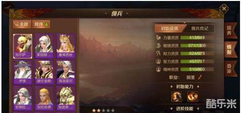 佣兵培养包括:育成、进阶、资质和能力。这些内容对佣兵的成长和委派任务成功起决定作用。其中: