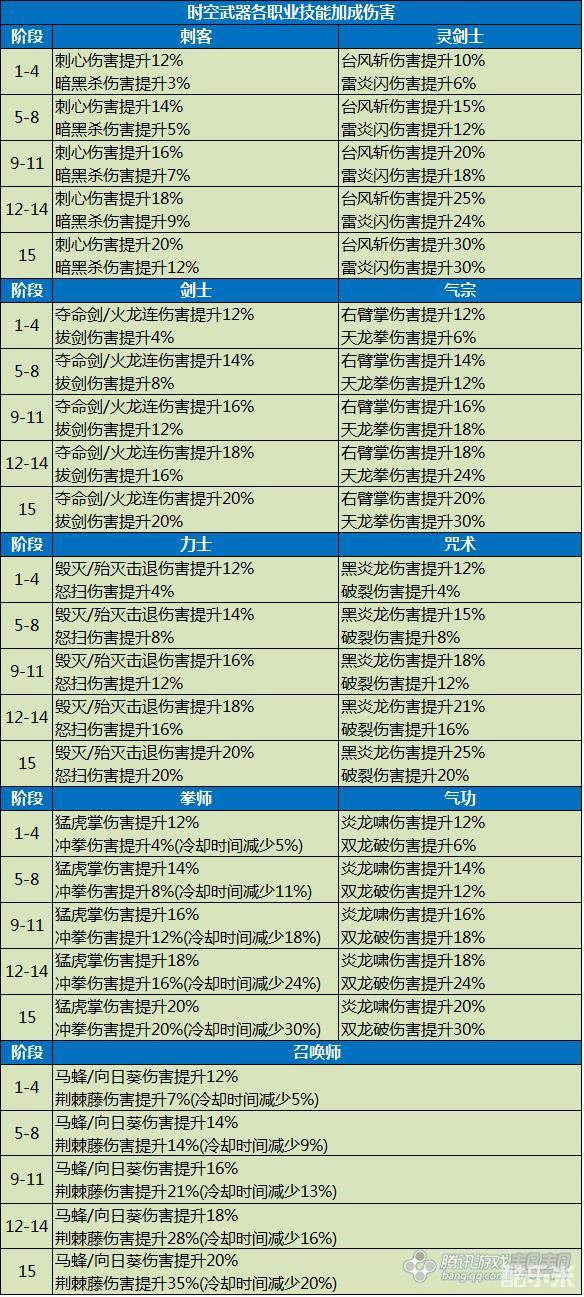 时空武器技能伤害加成: