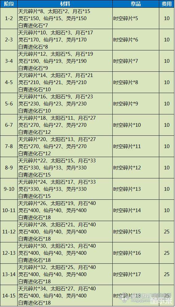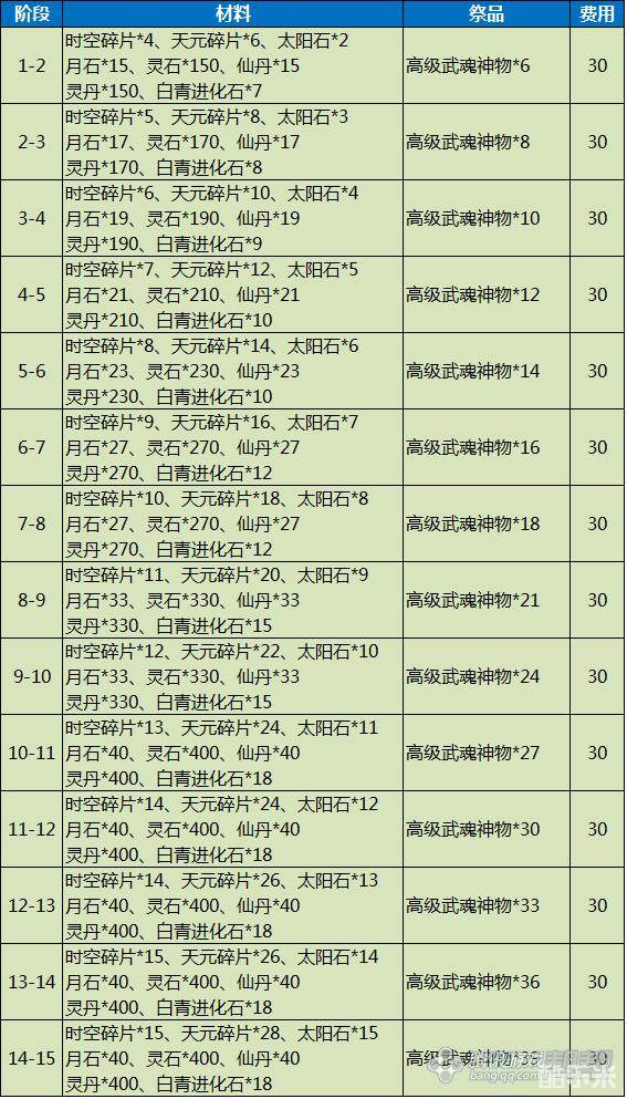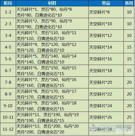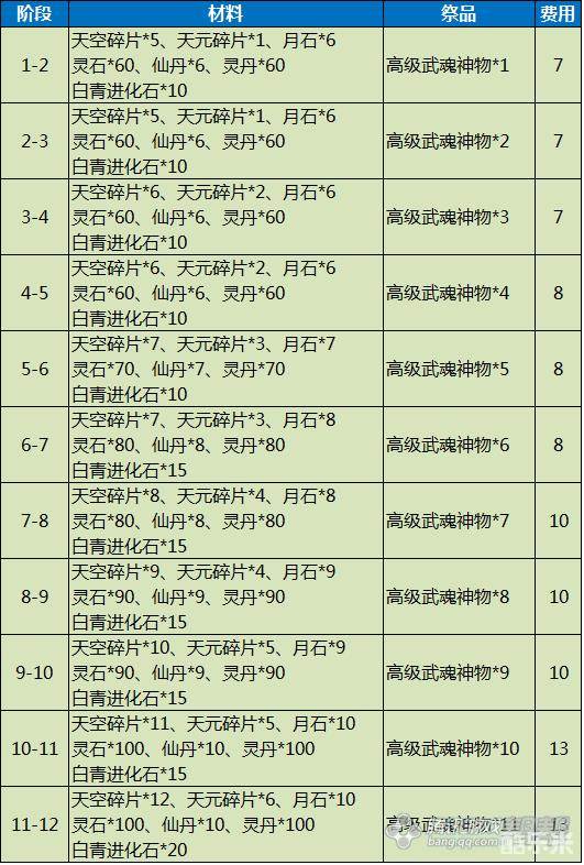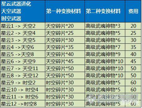剑灵时空/天空武器成长费用材料表