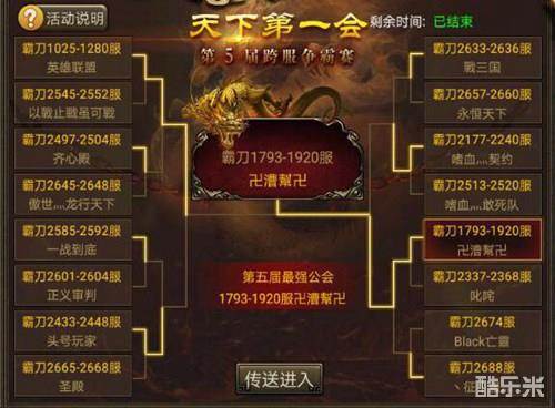 第5届《霸刀战神》跨服联赛已于5月25日(上周五)晚落下帷幕,最终的胜利属于卍漕幫卍行会。不过,无论胜败与否,只要参与了比赛就算是非常了不起的胜利,尤其是那些打入16强的行会。在这次实力、胆识和运气的综合较量中,每一场战斗都激烈而残酷,不断有勇士倒下,也不断有王者诞生。让我们一起回顾比赛从8进4到决赛的历程。