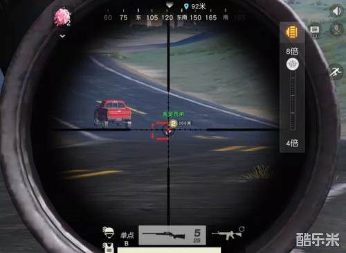 无论是八倍镜还是四倍镜,测距都是为了我们命中对手而服务的。在狙击大作战模式中,玩家们应该时刻记得把自己的枪口抬高一点,具体抬高的幅度需要根据敌人的距离灵活判断。如果时间紧迫来不及判断,把准心对着敌人头部上方一个刻度的地方,至少可以命中躯干部分。