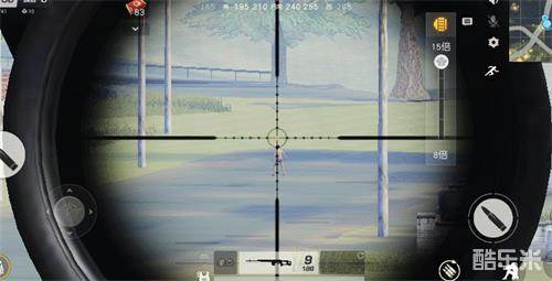 在使用八倍镜判断敌人的距离时和四倍镜的技巧略有不同。八倍镜的准星是以最中央的红点为基础呈十字状向四方扩散,且上下左右各有7个单位的刻度。在100m距离情况下,以站姿存在的敌人约占9个单位的刻度,而以蹲姿存在的敌人则大概占6个单位的刻度。