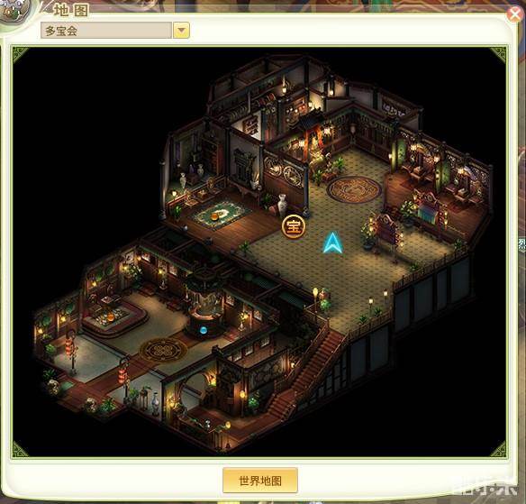 在地图上有一个宝的字样,进入该建筑后,和二楼的俞大娘对话就能接取多宝会势力任务了。