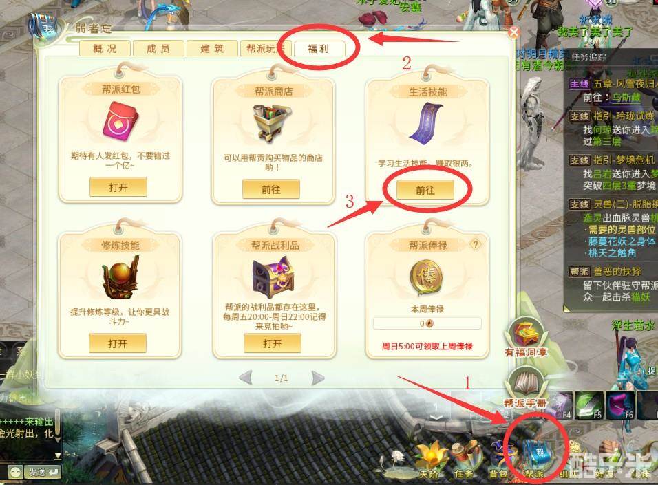 在《灵山奇缘》中,生活技能是帮派技能中的重要组成部分,加入帮派后查看福利选项卡,可以开始生活技能的学习。