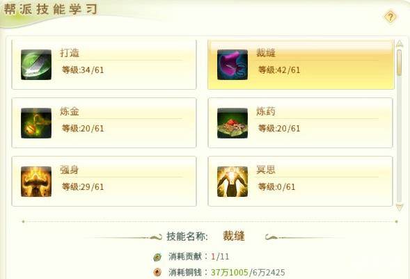 需要注意的是生活技能有多个,开发阶段与帮派建筑的等级提升有关。帮派技能升级需要消耗铜钱和帮贡,玩家如果想要提升自己的生活技能,需要积极参与各项帮派活动。