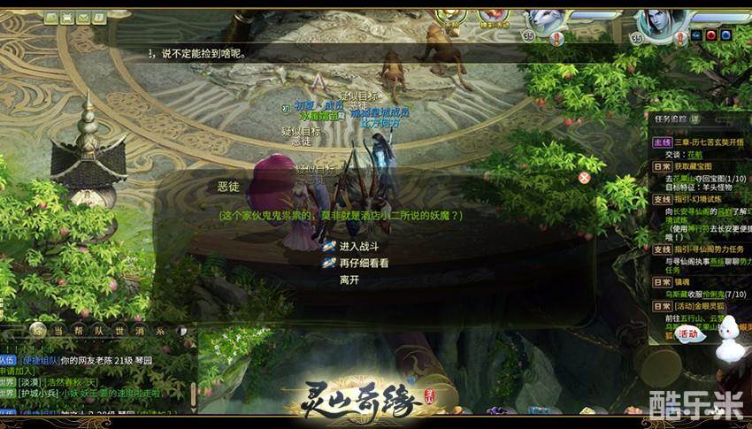 玩家可用自动寻路或使用神行符等方式前往目的地。前往目的地后,玩家会看到多数“疑似目标”,这就需要根据任务的目标特征选择其中的一只妖怪进行对战。