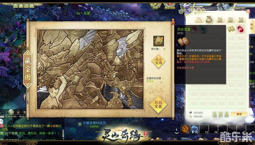 在《灵山奇缘》中,“挖宝”的活动分为两种,一种为以“寻宝图”为媒介的寻宝,另一种为以“风水宝鉴”为媒介的寻宝。两者看似相同,实则前者难度较低,后者较为繁琐。