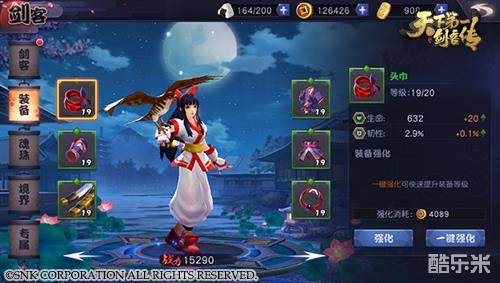 首先是装备,每个剑客有六个部位的固定装备,是剑客的基本属性成长来源,可通过打副本获得装备突破的材料,为装备进行升级。通过祈福、商店购买、活动副本等可以获得魂珠,每名剑客能佩戴六个魂珠,属性随机性大,可实现剑客的个性化养成。