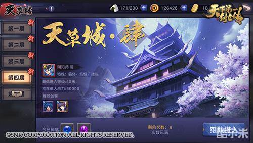 除关卡外,游戏内还有许多可以单人挑战的活动玩法。魔神封印每日12:00-13:00限时开放,可挑战5次,根据伤害进行排名,排名越高奖励越丰厚。剑客试炼分为忍、术、技三种,挑战成功可获得参悟卷轴和密印石。修行之路每日重置,玩家每通过一个关卡可以开启一个宝箱,通关越多奖励越好哦,希望大家每天都能坚持完成自己的修行,在剑道上有所成长。