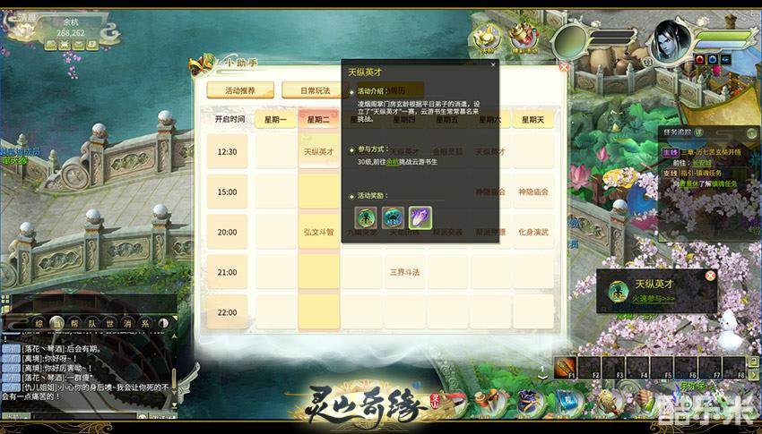 (3)游戏主界面上在小助手的左上方会有一个小提示框,上有“天纵英才”和“火速参与”,玩家只需点击“火速参与”,即可自动寻路到活动地点。
