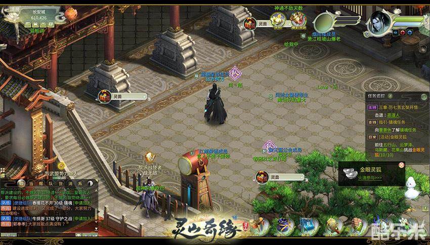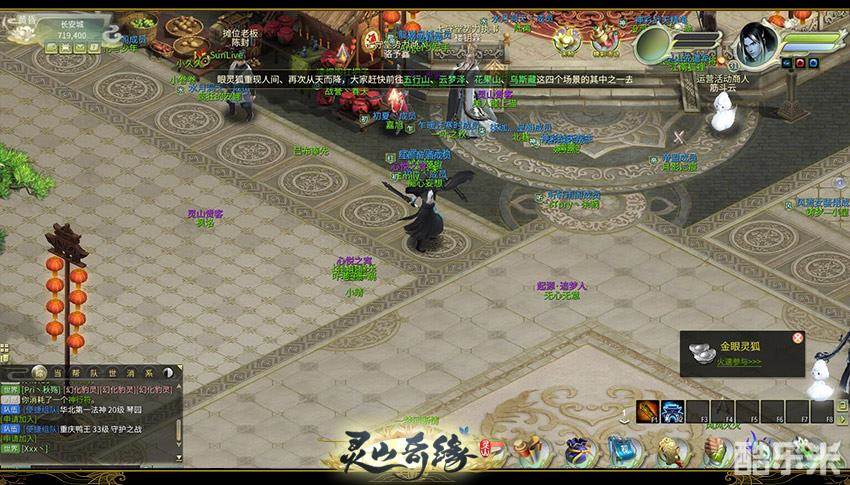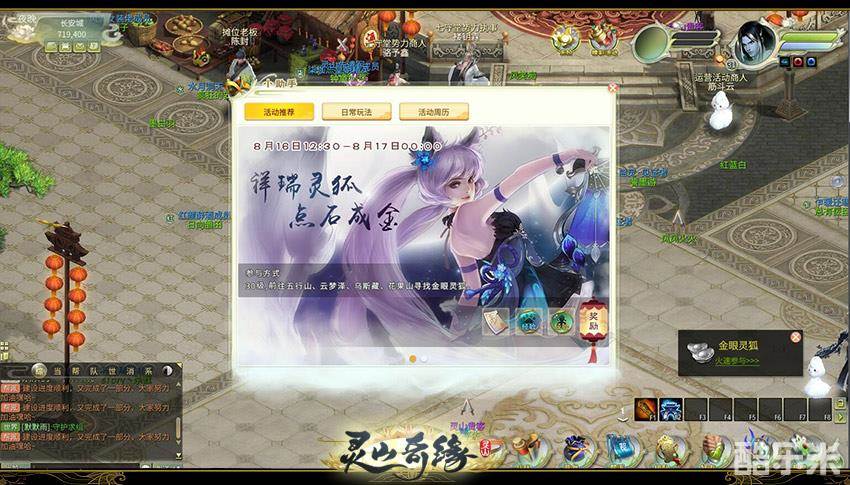 (3)游戏主界面上在小助手的左上方会有一个小提示框,上有为“金眼灵狐”和“火速参与”。玩家只需点击“火速参与”即可自动寻路到此活动地点参与活动。