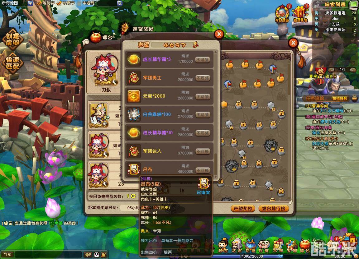 擂台排行赛的玩法和群雄试练场实际上是一样的,只不过玩家要面对的不是由系统预设的守将,而是由电脑托管的其他玩家的队伍。