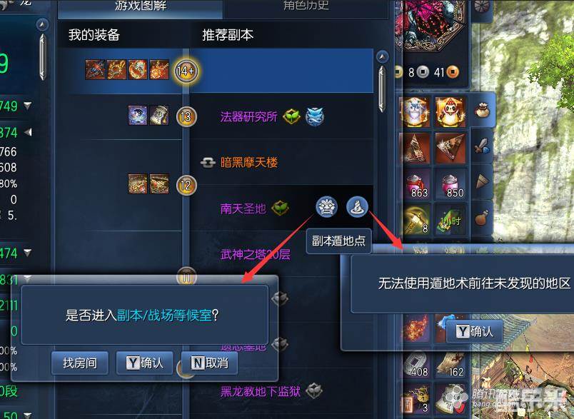 左侧则是进入跨服,右侧是遁地到副本所在区域