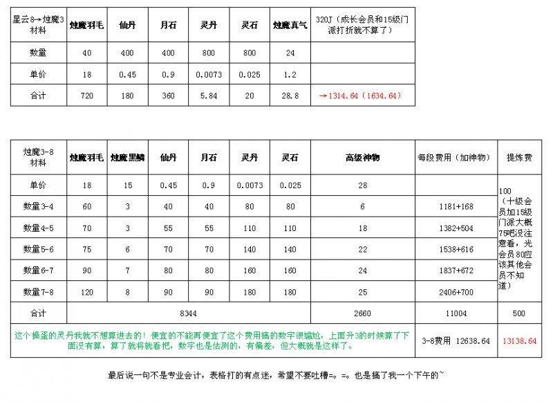 感觉问的人并不多,好多人也很盲目到底怎么做武器才会比较划算,盲目跟乱来可能会导致乱花很多钱,辛苦我一下午码了表格分享给吧友。二楼上图,顺便鼓励下自己的烛魔15梦。