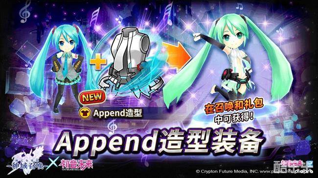 本次初音未来的联动秉承了3D可视化的游戏特色,装备的提升和变换都可以直观感受到。值得一提的是“Append造型装备”也是本次活动中玩家不容错过的,“Append造型装备”则是曾在初音未来演唱会上的使用服装,可以最大限度展现初音未来魅力,给3位魔法攻击力高的角色加速2回合,并让其魔法攻击力持续2回合提升5%。