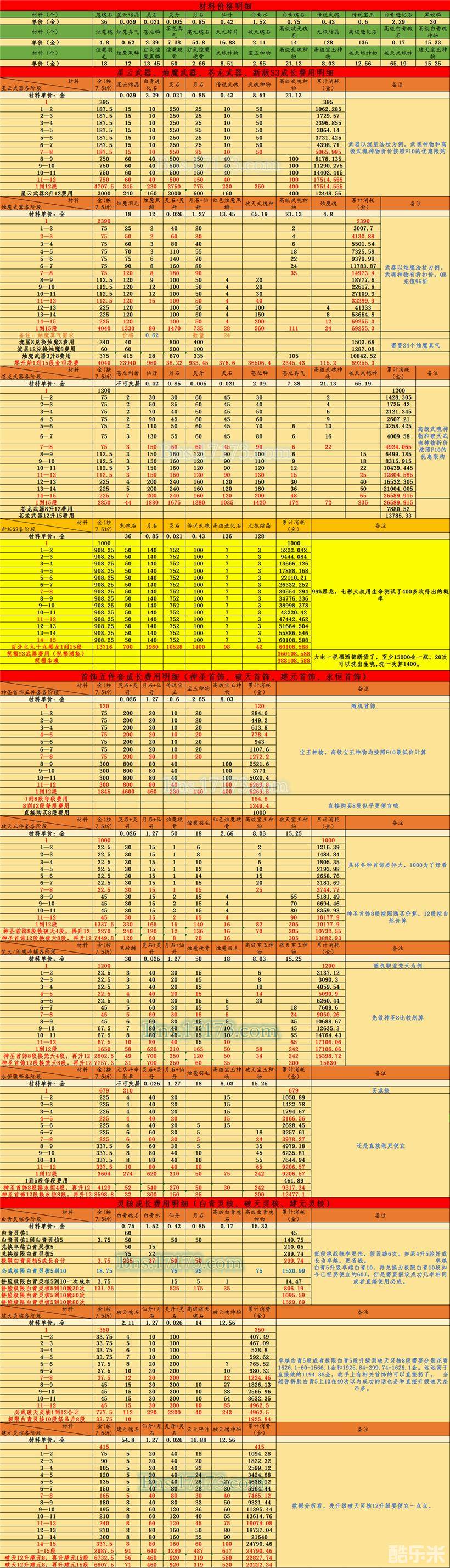 三、装备成长费用统计——表格数据(今天就用吹牛的草稿,和盘托出了)