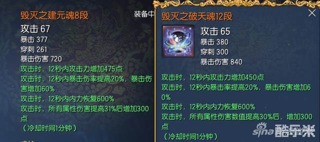 剑灵建元灵核毁灭8与老毁灭12伤害测试